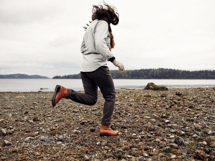 • A gray cat slinks past a wooden house. There’s something a little intimidating attempting to describe.